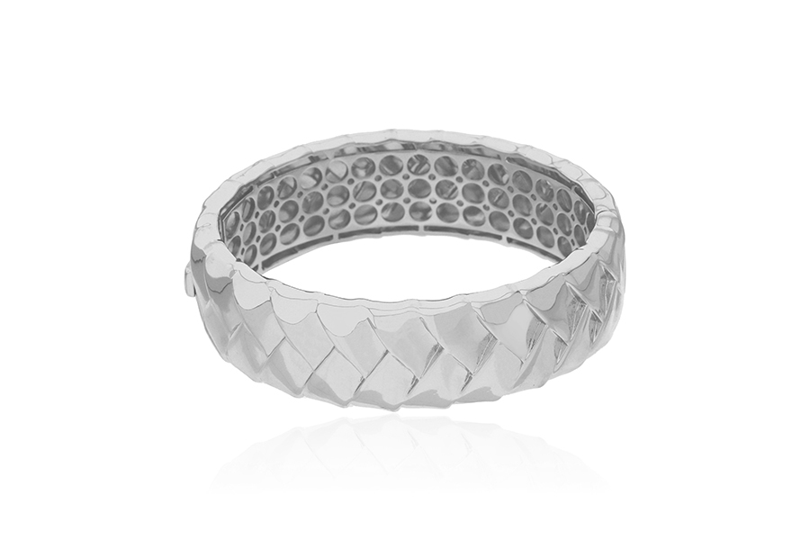 BRACELETE BANHADO EM RÓDIO BRANCO, CORAÇÃO 6,80mm DIÂMETRO, 5mm LARGURA, PARA ZIRCÔNIA BRANCA OU COLORIDA