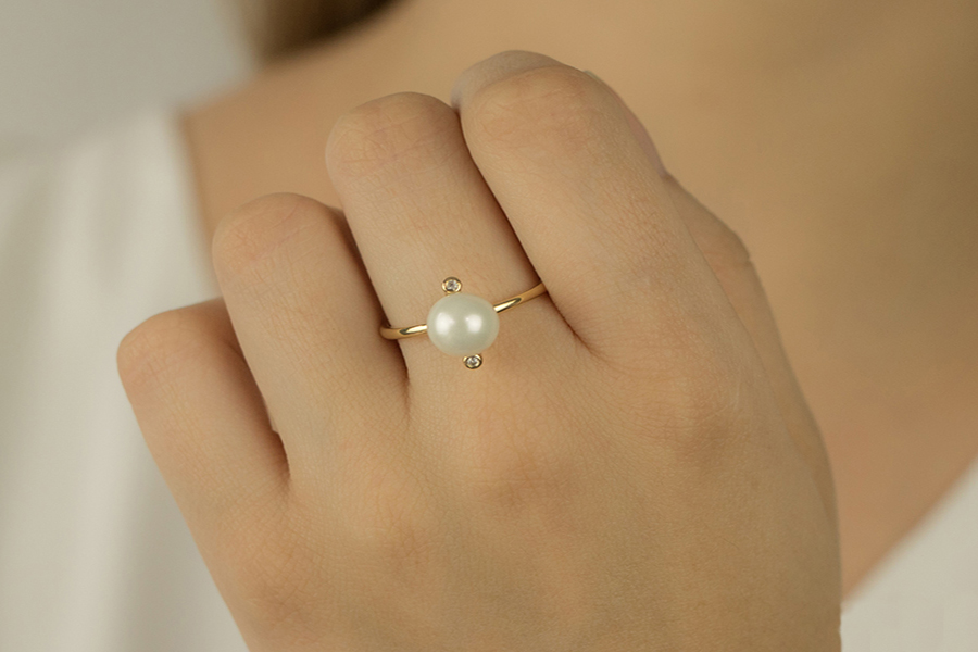 ANEL BANHADO EM OURO 7mm LARGURA E PÉROLA SHELL 8mm DIÂMETRO