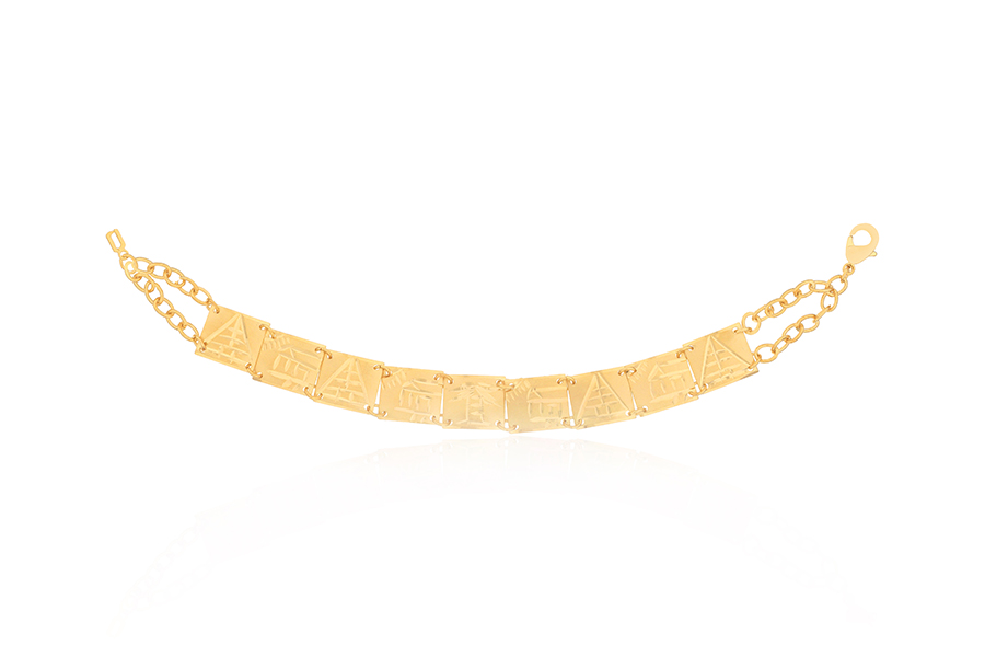 PULSEIRA BANHADA EM OURO, ELO 5mm LARGURA, 18cm COMPRIMENTO E MEDALHA PAI NOSSO 26mm DIÂMETRO