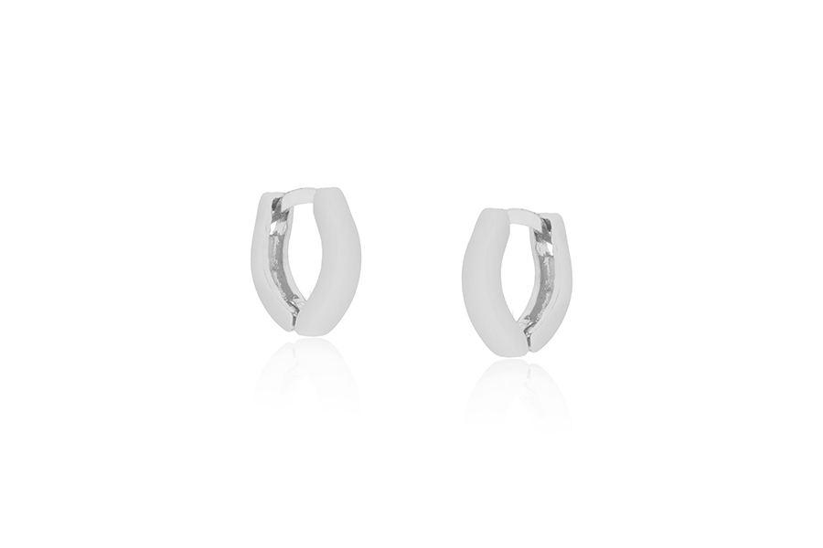 BRINCO BANHADO EM RÓDIO BRANCO, NAVETE 7,50mm COMPRIMENTO