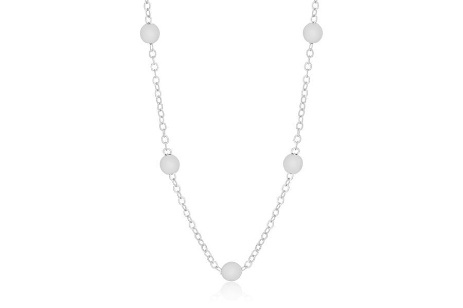 GARGANTILHA BANHADA EM RÓDIO BRANCO, VENEZIANA 0,80mm, 45cm COMPRIMENTO, INFINITO 5,80mm LARGURA E OLHO GREGO 4mm DIÂMETRO