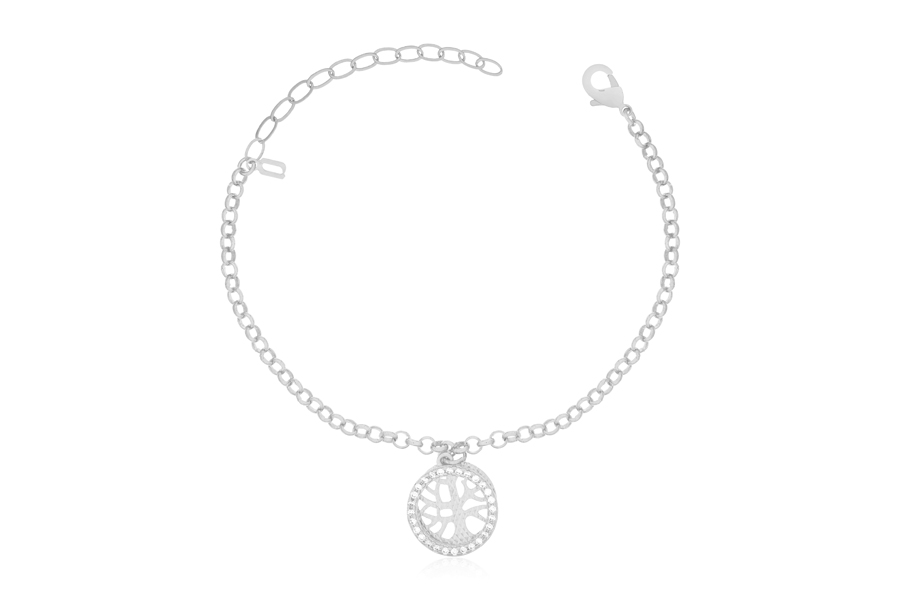 PULSEIRA BANHADA EM RÓDIO BRANCO, ELO PORTUGUÊS 2,50mm, 16cm COMPRIMENTO, E PONTO DE LUZ 4,50mm E PINGENTE FÉ 11mm DIÂMETRO