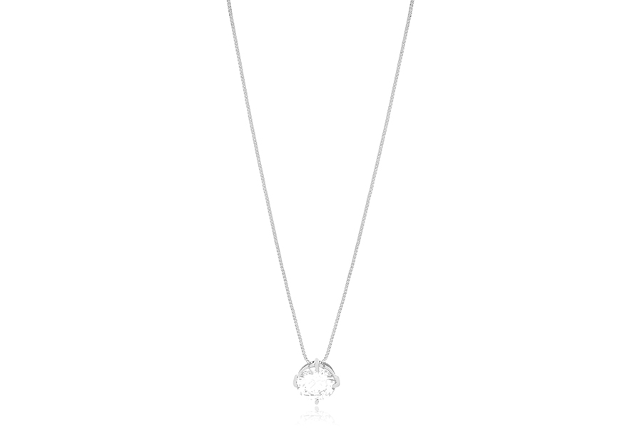 GARGANTILHA BANHADA EM RÓDIO BRANCO, VENEZIANA 0,80mm TRIPLA, CORAÇÃO 8mm LARGURA, OLHO GREGO 4mm E PONTO DE LUZ 3,50mm