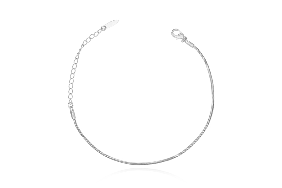 PULSEIRA BANHADA EM RÓDIO BRANCO, METADE COM ELO PORTUGUÊS 5mm E METADE COM ELO REDONDO 10mm E CORRENTE, 22cm COMPRIMENTO SEM EXTENSOR