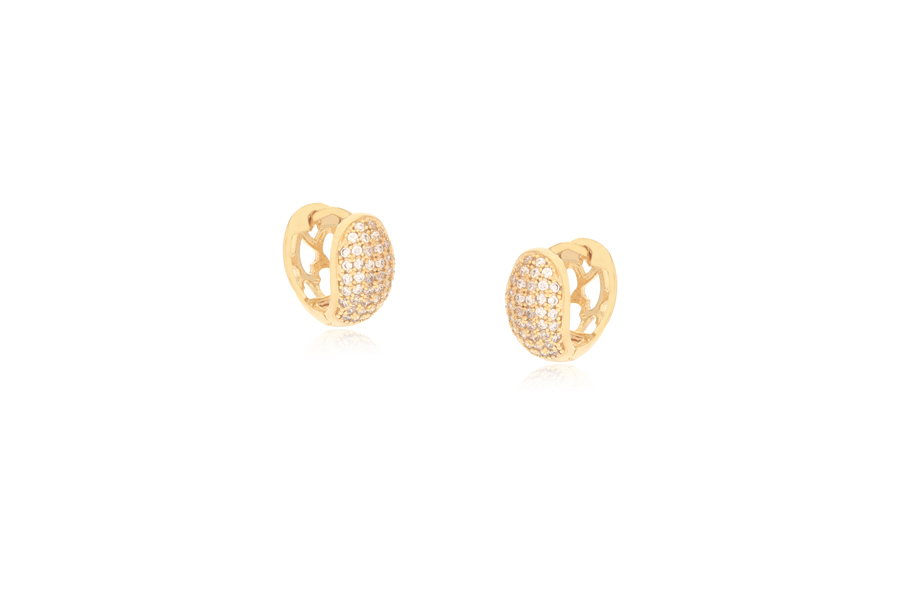 BRINCO BANHADO EM OURO, ARGOLINHA COM 25 ZIRCÔNIAS E 12mm DIÂMETRO COM ZIRCÔNIAS BRANCAS OU COLORIDAS