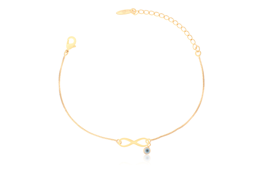 PULSEIRA BANHADA EM RÓDIO BRANCO, ELO 4mm LARGURA, FIGA, CORAÇÃO, CRUZ, OLHO GREGO E PONTO DE LUZ