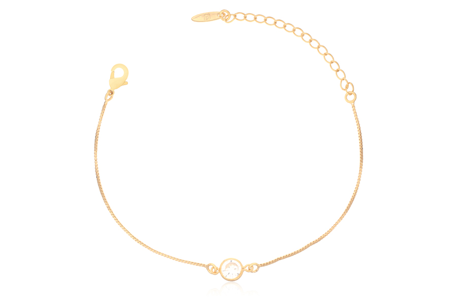 PULSEIRA BANHADA EM OURO, CRISTAL GOTA 14X10mm, ELO CARTIER 6,90X2,70mm, 16cm COMPRIMENTO E EXTENSOR 5cm COMPRIMENTO