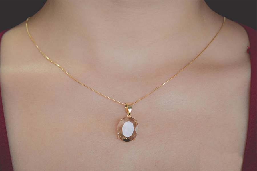 PINGENTE BANHADO EM OURO, CRISTAL OVAL 24x18mm