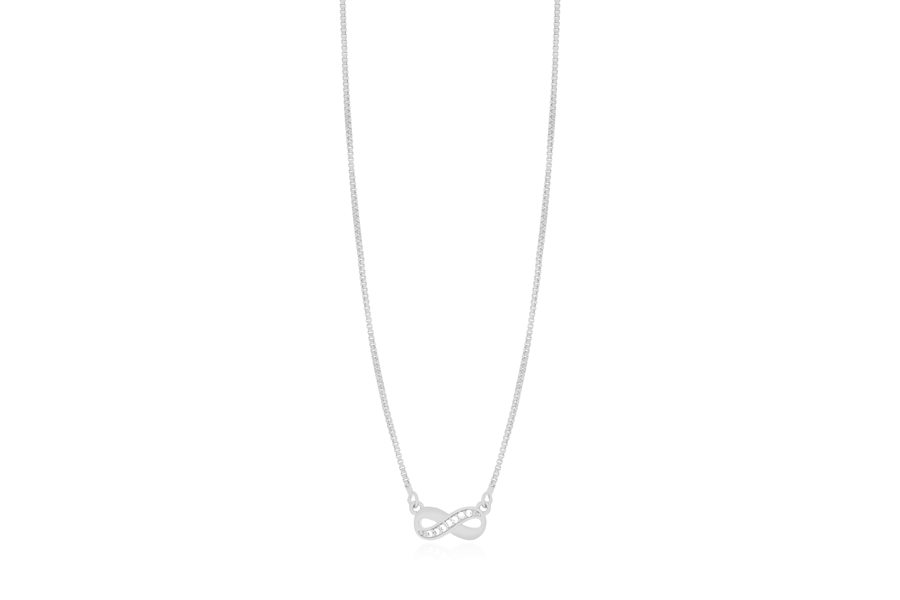 GARGANTILHA BANHADA EM RÓDIO BRANCO, VENEZIANA 0,80mm TRIPLA, CORAÇÃO 8mm LARGURA, OLHO GREGO 4mm E PONTO DE LUZ 3,50mm