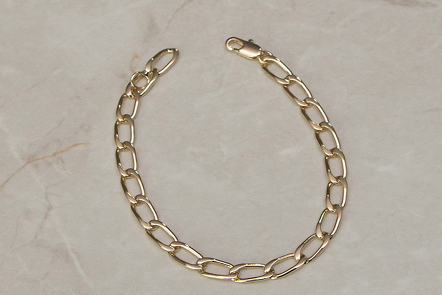 PULSEIRA BANHADA EM OURO, CORRENTE ELO PORTUGUÊS 2,50mm, 17cm COMPRIMENTO, EXTENSOR 5cm COMPRIMENTO E PESO 2,20g