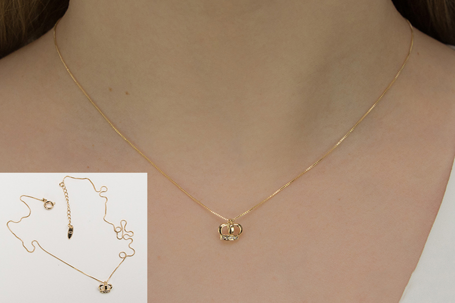 GARGANTILHA BANHADA EM OURO, VENEZIANA 0,60mm, 45cm COMPRIMENTO E PINGENTE ZIRCÔNIA NAVETE PARA TODAS AS CORES