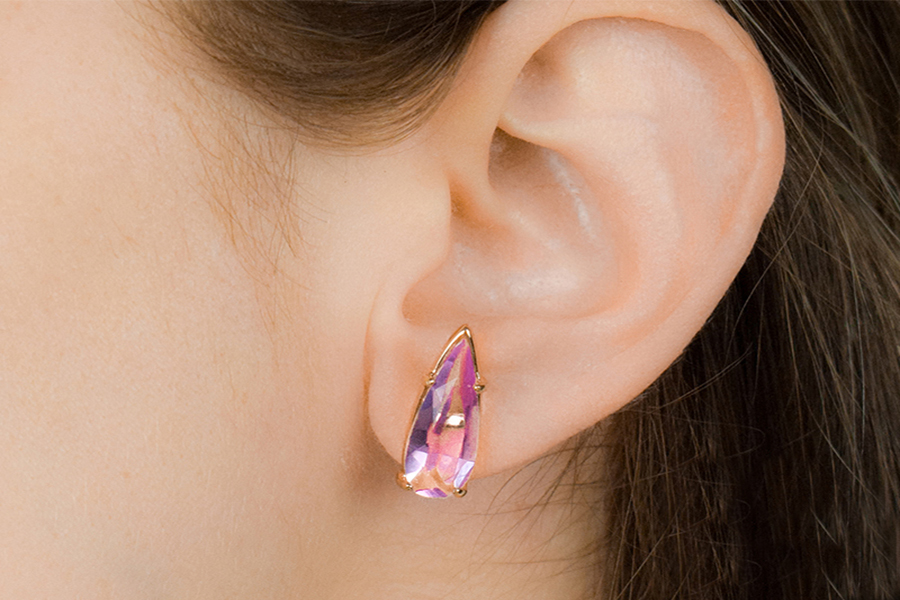 BRINCO BANHADO EM OURO, PONTO DE LUZ 5mm E CRAVAÇÃO INGLESA