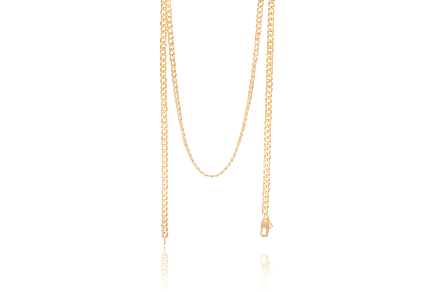 CORRENTE BANHADA EM OURO, ELO PORTUGUÊS 2,50mm, 40cm COMPRIMENTO, EXTENSOR 5cm COMPRIMENTO E PESO 3,40g