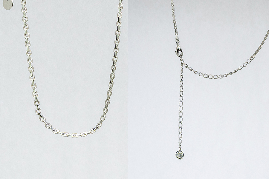 CORRENTE BANHADA EM PRATA LEVE, ELO LACRAIA LAMINADA 3mm, 43cm DE COMPRIMENTO, EXTENSOR 5cm COMPRIMENTO E PESO 6g