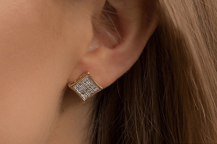 BRINCO BANHADO EM OURO, 29mm DE ALTURA, TARRAXA ASA, LISO OU ACETINADO, COLEÇÃO ALQUIMIA