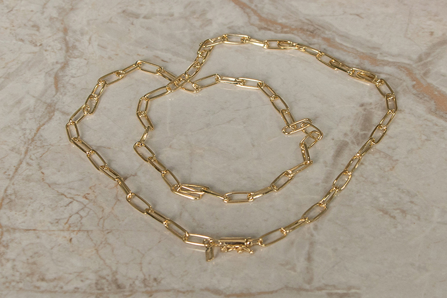 CORRENTE BANHADA EM OURO, ELO PORTUGUÊS 7mm DIÂMETRO, 1,90mm ESPESSURA, 45cm COMPRIMENTO E PESO 28,70g