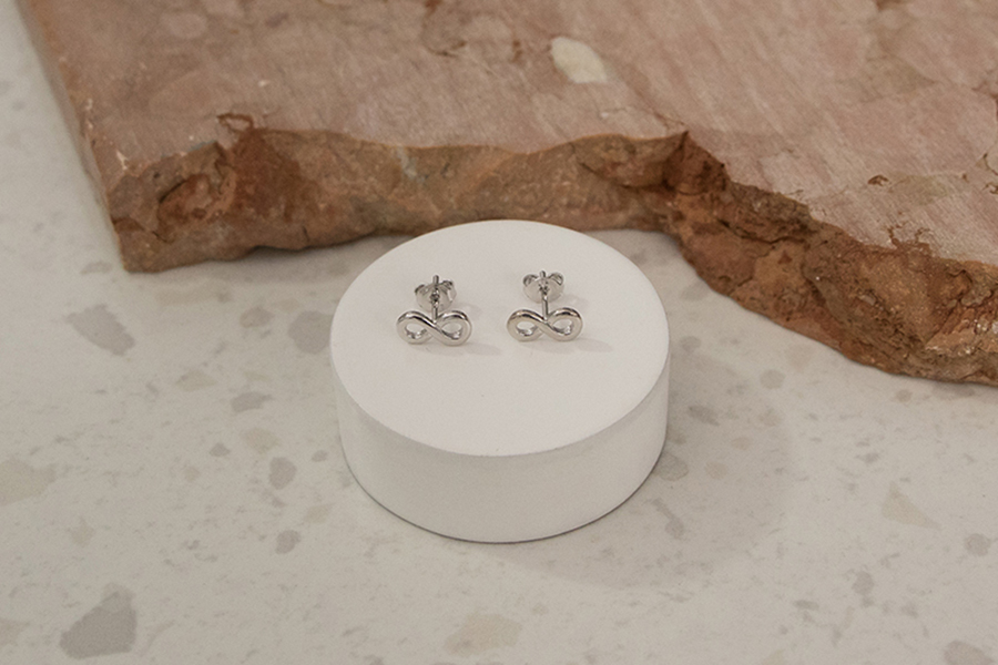 BRINCO BANHADO EM RÓDIO BRANCO, INFINITO 11mm LARGURA COM ZIRCÔNIAS