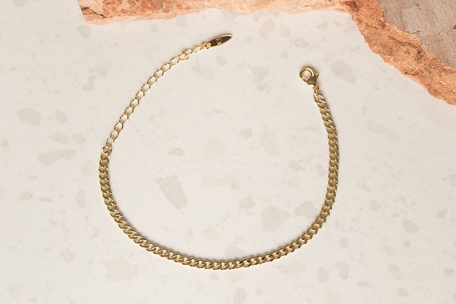PULSEIRA BANHADA EM OURO, CORRENTE ELO PORTUGUÊS 5mm, 17cm COMPRIMENTO, EXTENSOR 5cm COMPRIMENTO E PESO 4,60g