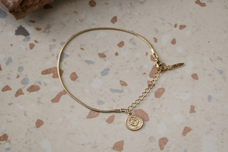 PULSEIRA INFANTIL BANHADA EM OURO, VENEZIANA LONGA 1,50mm ESPESSURA E CHAPINHA COM MENINO 24mm COMPRIMENTO