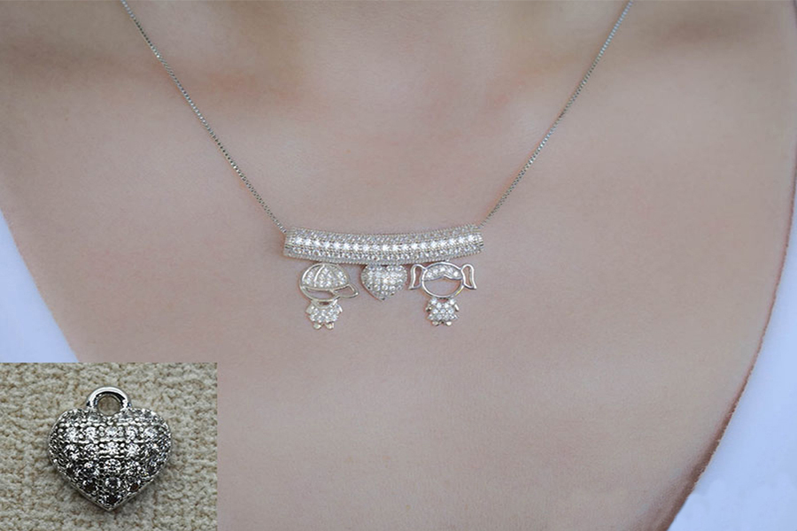 PINGENTE DE BIJUTERIA CORAÇÃO 12mm LARGURA COM 64 ZIRCÔNIAS