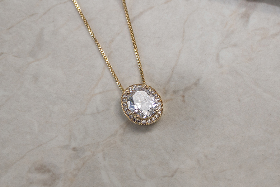GARGANTILHA BANHADA EM OURO, VENEZIANA 1,50mm ESPESSURA, 40cm COMPRIMENTO E GOTA 25X18mm, COM FORRO DE ZIRCÔNIAS, PARA TODAS AS CORES DE PEDRA