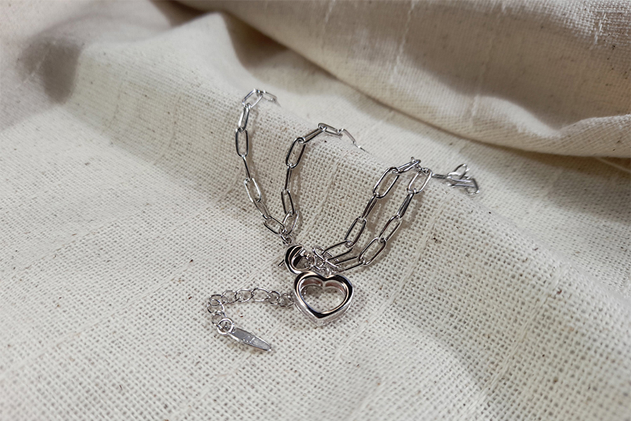 PULSEIRA BANHADA EM RÓDIO BRANCO, ELO 4mm LARGURA, 20cm COM EXTENSOR, DOIS CORAÇÕES E CORAÇÃO GATO 11mm LARGURA