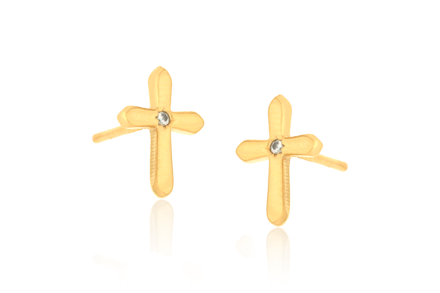 BRINCO BANHADO EM OURO, ARGOLINHA E CRUZ 13mm COMPRIMENTO