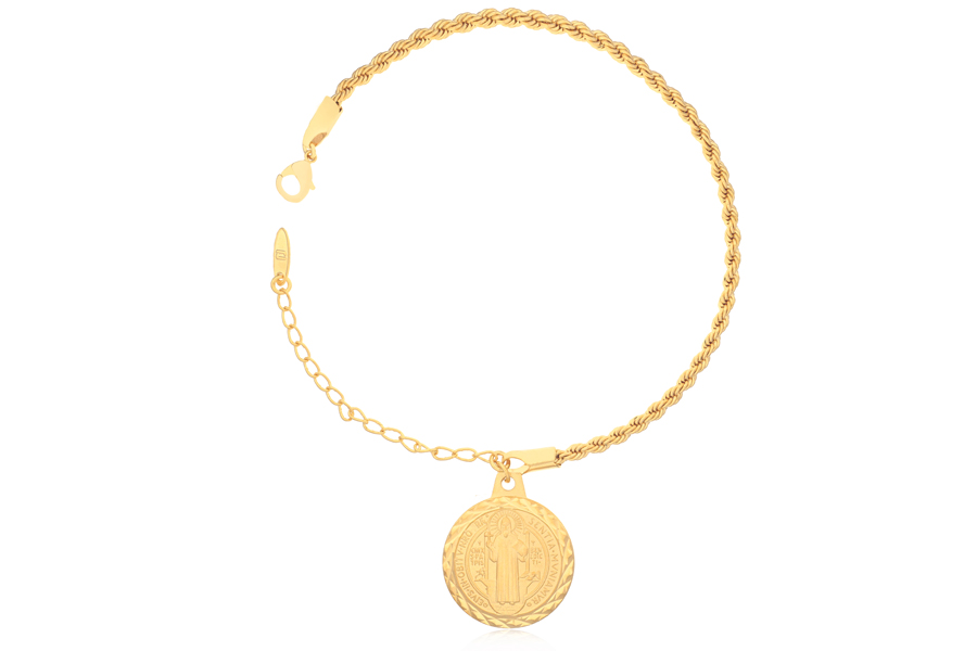 PULSEIRA BANHADA EM OURO, ELO 5mm LARGURA, 18cm COMPRIMENTO E MEDALHA PAI NOSSO 26mm DIÂMETRO
