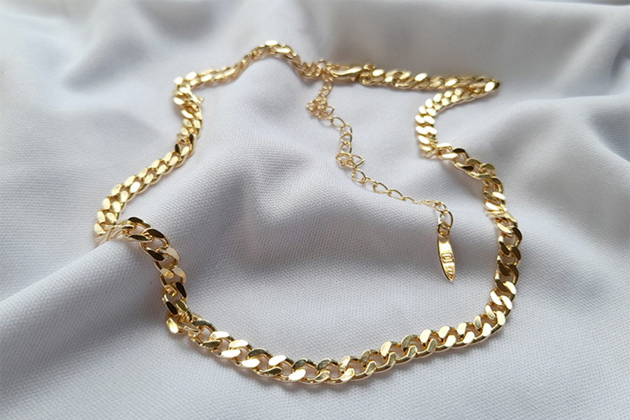 CHOKER BANHADA EM PRATA LEVE, CORRENTE ELO 3,90mm LARGURA, 35cm COMPRIMENTO, EXTENSOR 10cm COMPRIMENTO E PESO 8g