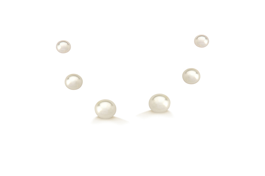 CONJUNTO BANHADO EM OURO, TRIO DE BRINCOS PÉROLA 6mm, 5mm E 4mm