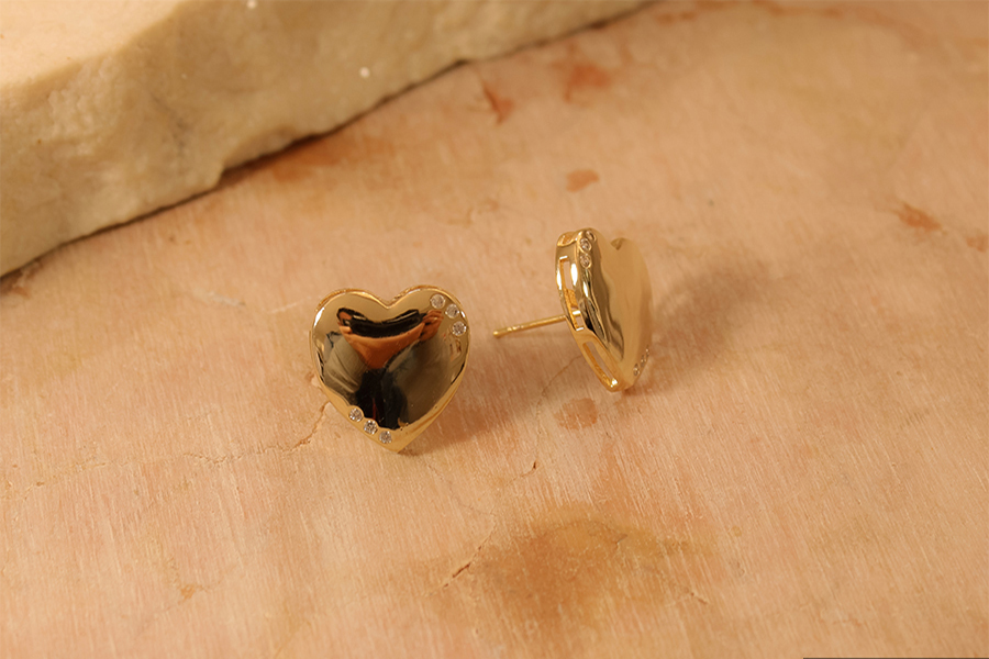 BRINCO BANHADO EM OURO, CORAÇÃO 8,60mm COMPRIMENTO, COM RESINA COLORIDA