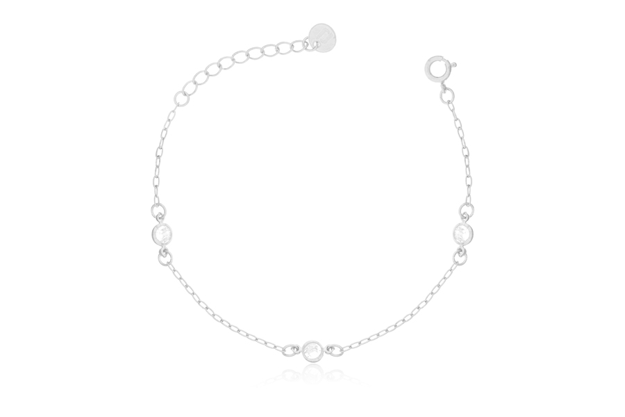 PULSEIRA BANHADA EM RÓDIO BRANCO, INFANTIL, DUPLA, ELO OVAL 0,80mm, 14cm COMPRIMENTO, EXTENSOR 5cm COMPRIMENTO E PONTO DE LUZ 3mm