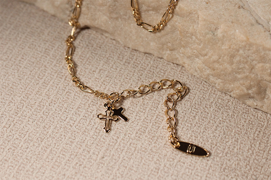 TORNOZELEIRA BANHADA EM OURO, ELO 1,80mm, 21cm COMPRIMENTO COM 7 ESPINÉLIOS