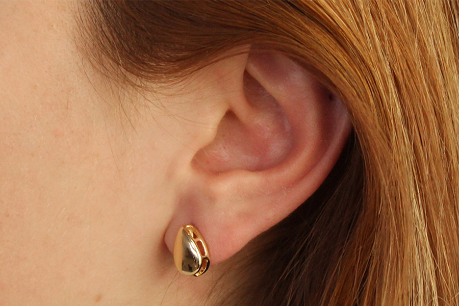 BRINCO BANHADO EM OURO GOTA 25X13mm LISO OU ACETINADO