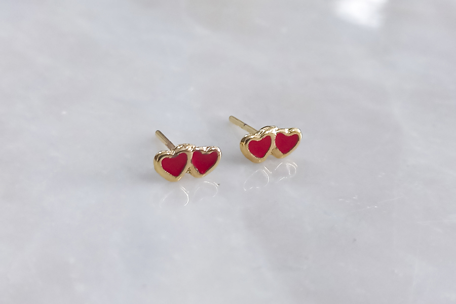 BRINCO BANHADO EM OURO, CORAÇÃO 8,60mm COMPRIMENTO, COM RESINA COLORIDA
