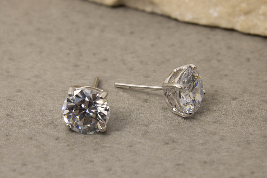 BRINCO BANHADO EM RÓDIO BRANCO, PONTO DE LUZ 3mm, CRAVAÇÃO INGLESA