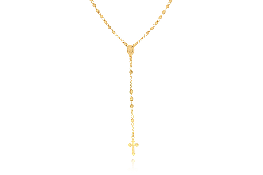 GARGANTILHA BANHADA EM OURO, NOSSA SENHORA DAS GRAÇAS, OVAL 28x23mm, 2 FLORES, ELO VENEZIANA 0,80mm, 45cm COMPRIMENTO, EXTENSOR 5cm
