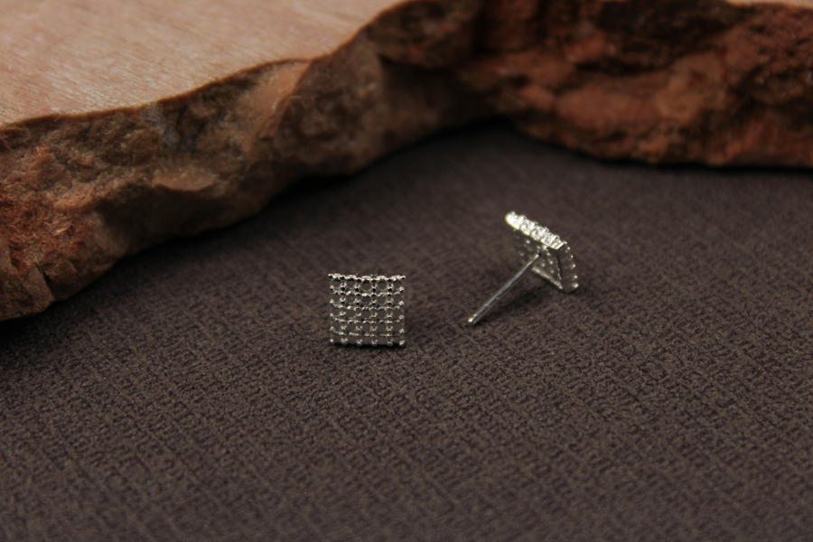 BRINCO BANHADO EM RÓDIO BRANCO, ZIRCÔNIA QUADRADA 11mm, PARA QUALQUE COR DE PEDRA