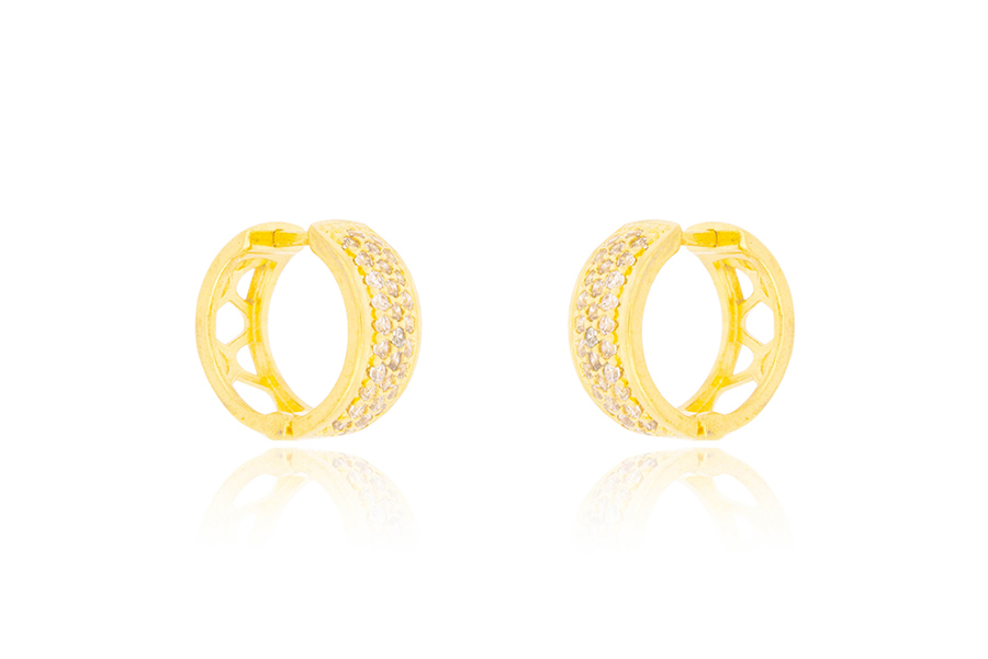 BRINCO BANHADO EM OURO, 15mm ALTURA COM 21 ZIRCÔNIAS