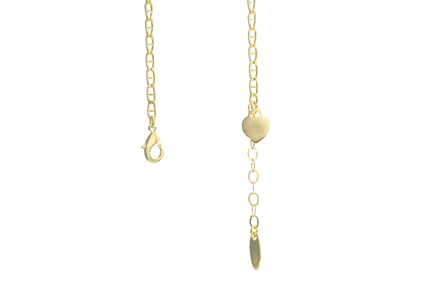 PULSEIRA BANHADO EM OURO INFANTIL ELO PORTUGUÊS 2mm 12cm COMPRIMENTO E CORAÇÃO LOVE 750mm LARGURA