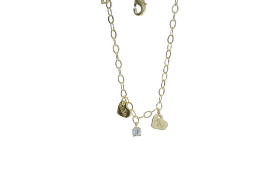 PULSEIRA BANHADO EM OURO INFANTIL ELO PORTUGUÊS 2mm 12cm COMPRIMENTO E CORAÇÃO LOVE 750mm LARGURA