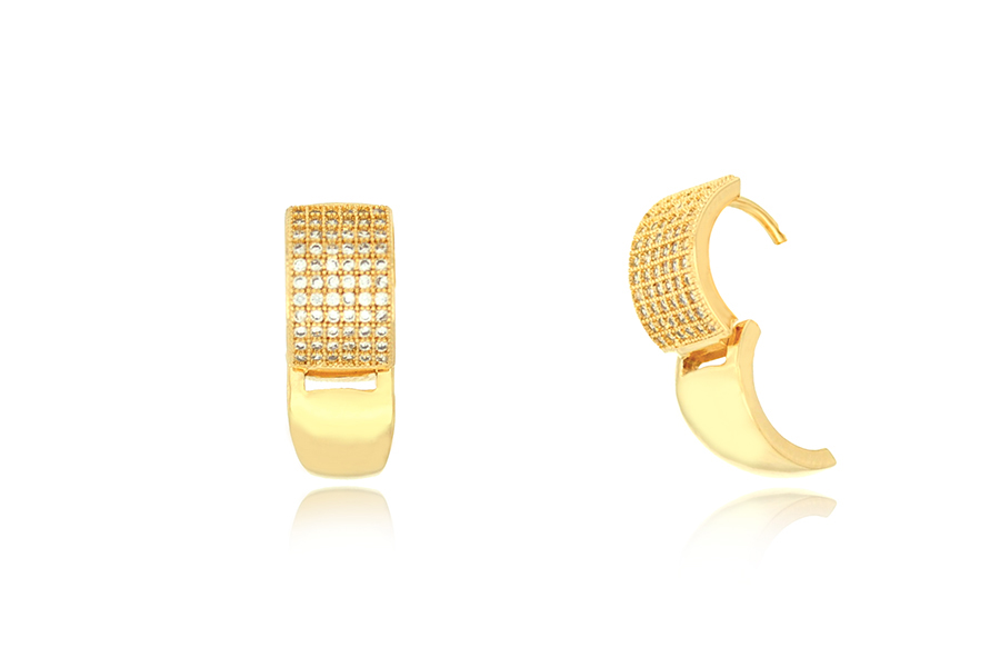 BRINCO BANHADO EM OURO, ARGOLINHA COM 54 ZIRCÔNIAS E 17mm DIÂMETRO COM ZIRCÔNIAS BRANCAS OU COLORIDAS