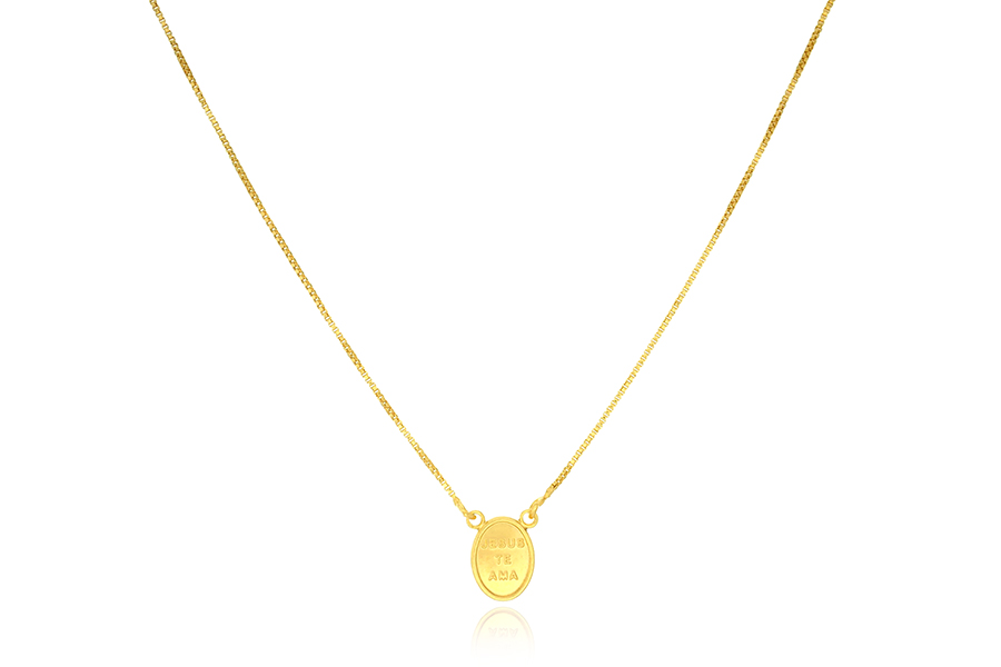 GARGANTILHA BANHADO EM OURO ESCAPULÁRIO MEDALHA 14X10mm, 60cm COMPRIMENTO, PELA GRAÇA SOIS SALVOS, O SENHOR TE ABENCOE E TE GUARDE