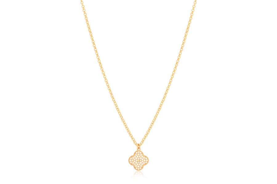 GARGANTILHA BANHADA EM OURO, ELO VENEZIANA 0,80mm, 43cm COMPRIMENTO, EXTENSOR 5cm COMPRIMENTO E FLOR 20mm