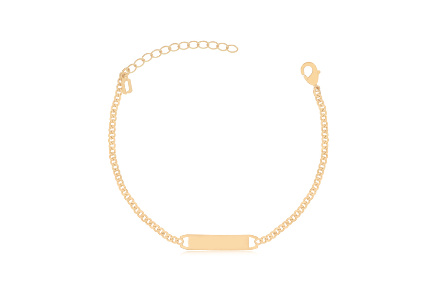 PULSEIRA INFANTIL BANHADA EM OURO, VENEZIANA LONGA 1,50mm ESPESSURA E CHAPINHA COM MENINA 24mm COMPRIMENTO