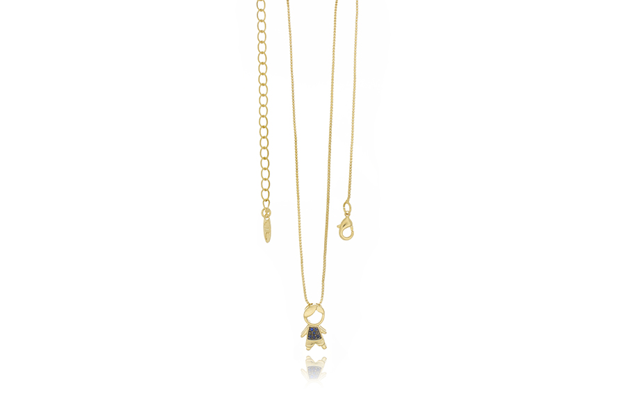 CHOKER BANHADA EM OURO, ELO GRUMET 2mm LARGURA, 35cm COMPRIMENTO, EXTENSOR 10cm COMPRIMENTO E URSO 13mm ALTURA