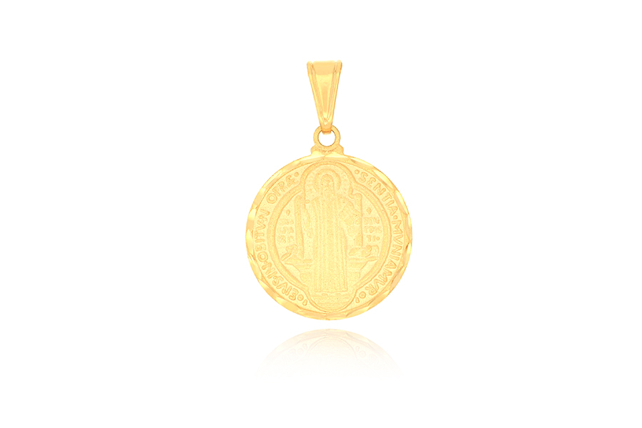 PINGENTE BANHADO EM OURO SAO BENTO 18mm DIÂMETRO, LINHA TRADICIONAL