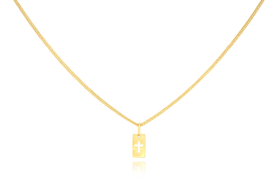GARGANTILHA BANHADA EM OURO, ELO 1,50mm LARGURA, 60cm COMPRIMENTO E PINGENTE OVAL 18X11mm COM DUAS CRUZES