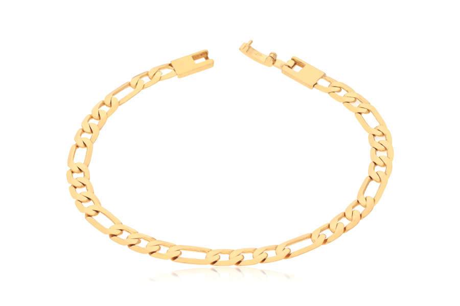 PULSEIRA BANHADA EM OURO, CORRENTE ELO PORTUGUÊS 5mm, 17cm COMPRIMENTO, EXTENSOR 5cm COMPRIMENTO E PESO 4,60g