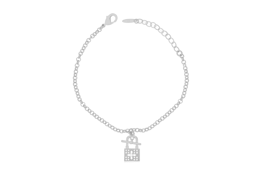 PULSEIRA BANHADA EM RÓDIO BRANCO, ELO PORTUGUÊS 2,50mm, 16cm COMPRIMENTO, E PONTO DE LUZ 4,50mm E PINGENTE FÉ 11mm DIÂMETRO